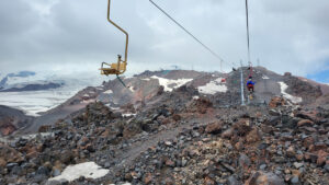 Wjeżdżamy kolejką (najpierw stary wagonik, potem krzesełko) do „starego Garabashi” (3670 m). To tuż obok słynnych „Beczek”, tych ponoć po paliwie. Jeszcze tego samego dnia, w celu rozruszania i aklimatyzacji wchodzimy na wysokość ok. 4150 m i wracamy na nocleg do Garabashi. Niestety nie ma z nami tego dnia Łukasza, który po ostrym ataku choroby wysokościowej na Kazbeku woli nie ryzykować i decyduje się spać na dole.