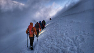 Mamy zatem w grupie dwie osoby bez odpowiedniej aklimatyzacji, bo na Kazbek nie weszła również Anna. Lecz to właśnie ona wpada na genialny pomysł, by zaimprowizować aklimatyzację z użyciem skuterów śnieżnych.