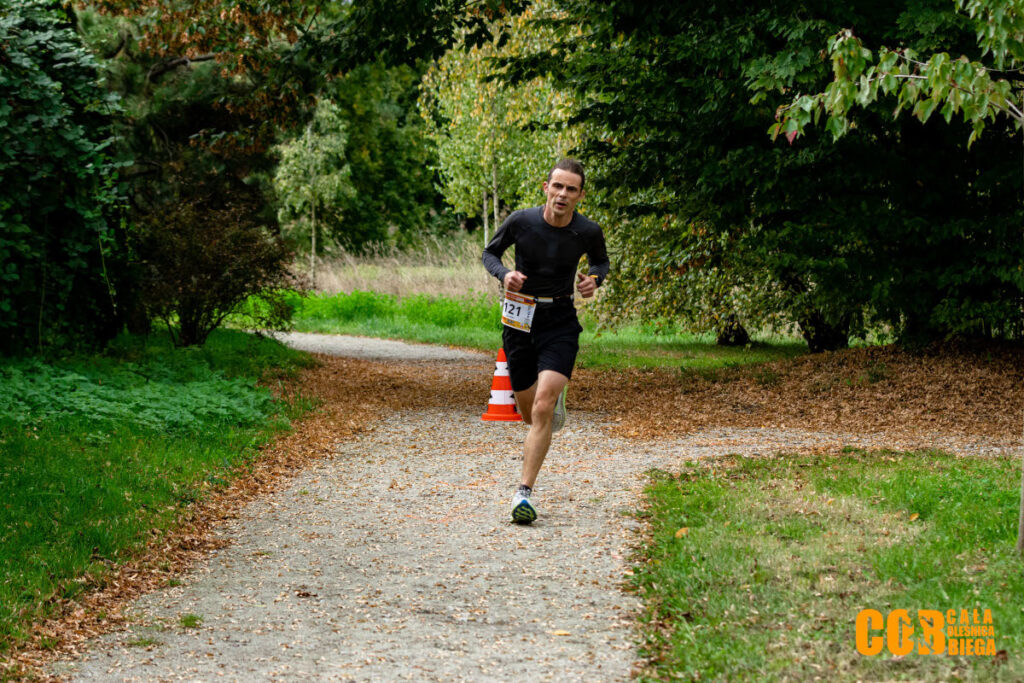 Po tych mocnych 3 kilometrach wbiegam w pola, lekko pod górkę, do tego dostaję wiatr w brzuch i zaczynam słabnąć. Czując, jak siły ulatują, zwalniam do około 3:55 – 4:00 min/km i tak pokonuję następne 3 kilometry . Dobiegam do mety, którą się na tym etapie przekracza, by pokonać krótszą pętlę.