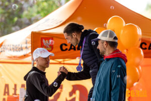 Wśród kibiców łapię kontakt wzrokowy z Justyną, która pokazuje mi dłoń. Ten gest zdziałał cuda, ponieważ myślałem, że jestem daleko za dużą grupą biegaczy, a tymczasem dostałem od niej wyraźny sygnał, że jestem na piątej pozycji.