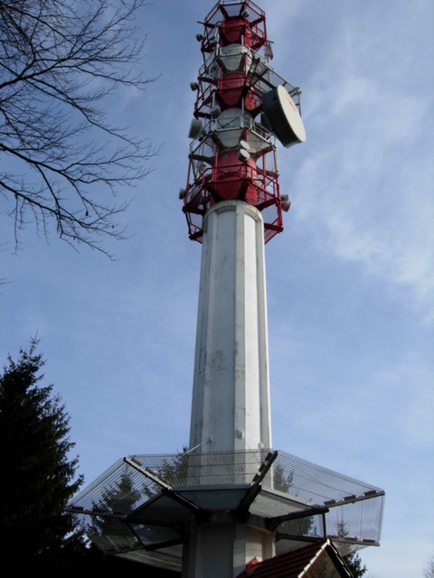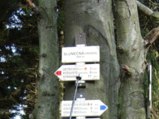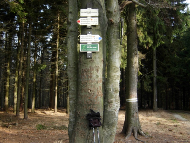 Po zejściu z Pradziada zajeżdżam na parking w Detrichov nad Bystricy i natychmiast (godz. 11:27) ruszam po najwyższą górę w Niskim Jesioniku - Slunečná (800 m npm). Wejście na szczyt zabiera mi 28 minut. Na górze robię parę fotek (mam do wyboru: fotografować las lub wieżę), i schodzę na dół. W myślach zachwycam się nad tym, jak mi to sprawnie idzie. I tak się zachwyciłem, że zamiast w prawo to skręciłem w lewo i zrobiłem dużo dłuższą drogę. Czyli chociaż schodziłem szybciej to paradoksalnie zajęło mi to więcej czasu niż wejście. Nie szkodzi, i tak czas jest dobry. O 12:40 docieram do auta i od razu jadę w kierunku Gór Opawskich.