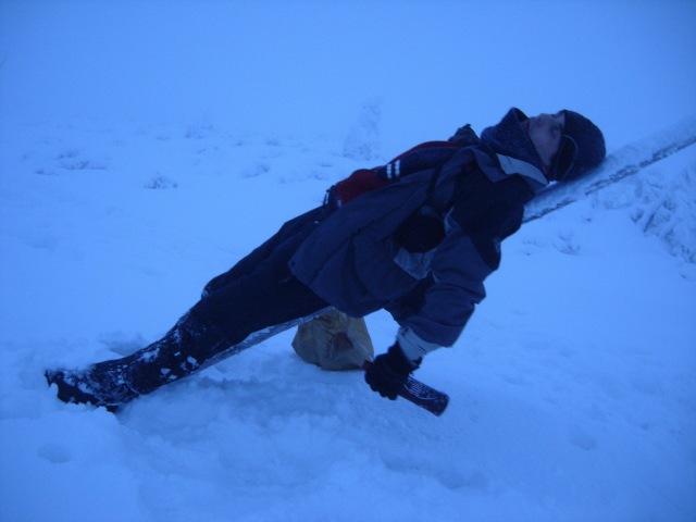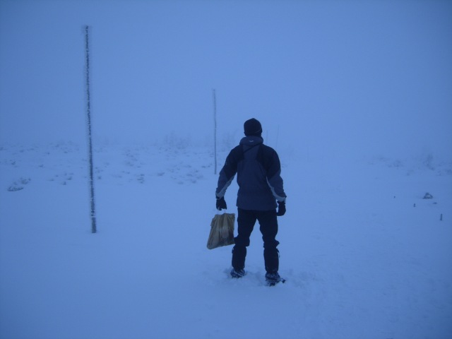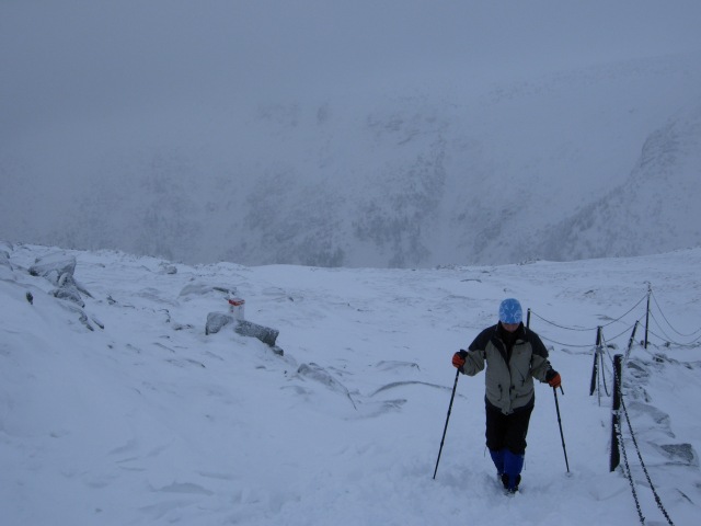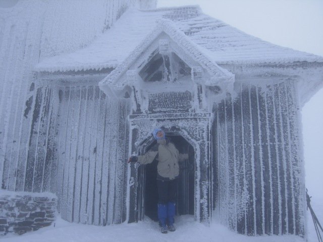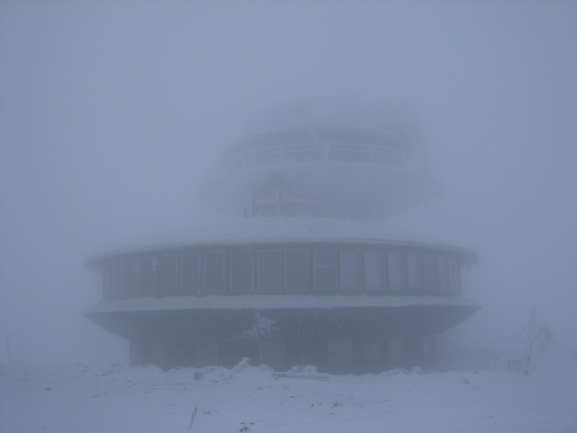 Zaczęliśmy od Karkonoszy. Dzięki dobrej woli sympatycznego właściciela jednego z pensjonatów możemy zostawić auto w bezpiecznym miejscu i przed południem ruszyć na Śnieżkę. Wejście do Domu Śląskiego zajmuje nam 2,5h. Potem jeszcze 0,5h i stoimy na szczycie. Widoków brak zupełnie, ale żeby nie zniechęcić tych, którzy na Śnieżkę zamierzają się zimą wybrać po raz pierwszy, to zapewniam, że przy dobrej pogodzie wrażeń wizualnych nie zabraknie.