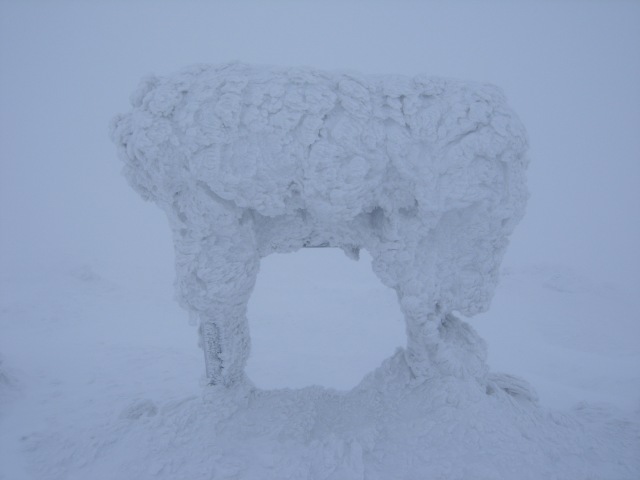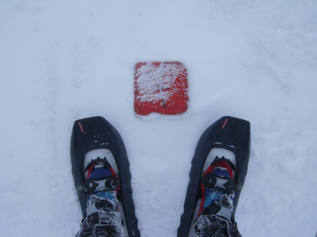 O 7:00 ruszam z Kletna na Śnieżnik. Na nartach szybko docieram pod schronisko. Tym razem chcę jednak zejść ze szczytu z godnością a nie np. rozbijając się o drzewo lub o ścianę schroniska, dlatego ściągam narty i zakładam rakiety. Nie widząc żadnych śladów po omacku człapię na górę. Już o 8:50 rozglądam się zagubiony na wypłaszczeniu na szczycie. Wielką stertę kamieni po historycznej wieży widokowej zauważam dopiero kiedy stoję kilka kroków od niej.
