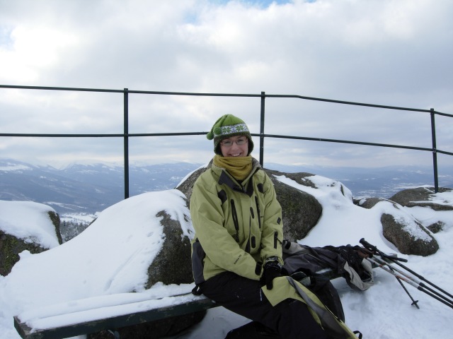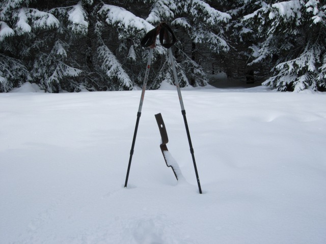 Skalnik - górę nr 21, zrobiliśmy z Anetką w ładnych i całkowicie zimowych okolicznościach. Zamarznięta, twarda skorupa starego śniegu przykryta została świeżutkim puchem. Na platformę widokową na szczycie weszliśmy w niecałe 1,5h - zielonym szlakiem od strony Kowar. Stamtąd udałem się jeszcze w las na poszukiwania wyższego wierzchołka. Po natknięciu się na niebieski szlak idę nim kawałek i dostrzegam przysypane ślady odbiegające w lewo. Parędziesiąt kroków od szlaku znajduje jakieś żelastwo wystające ze śniegu. Miejsce to pasuje mi do tego, którego szukałem. Zza chmur wychodzi słońce. Widzę, że do zmroku zostało jeszcze trochę czasu. To oznacza, że jeszcze dziś spróbuję zakończyć projekt i wejść na ostatnią górę z listy - Waligórę.
